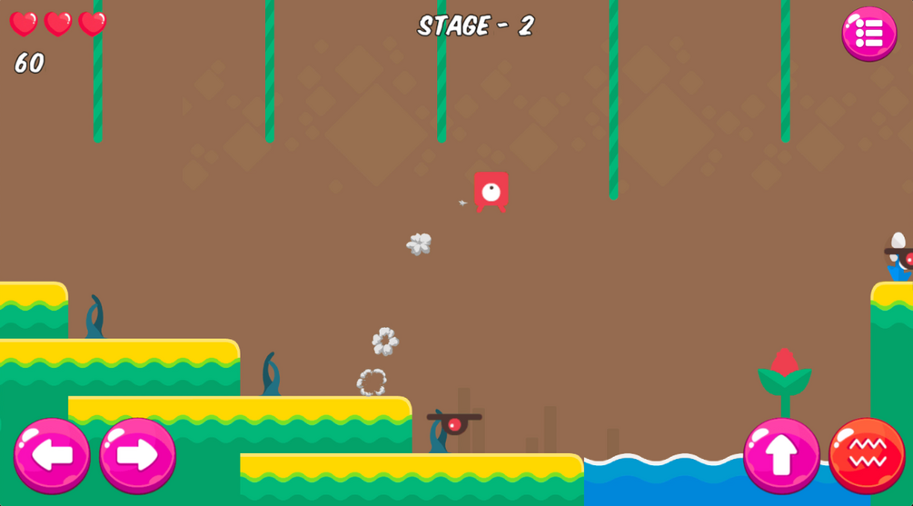 Abstract Platformer is a cute side scroller and platformer game. Your goal is to travel through 12 worlds where you have to destroy all monsters and reach the exit. To kill enemies you can jump on them or fire your projectile!