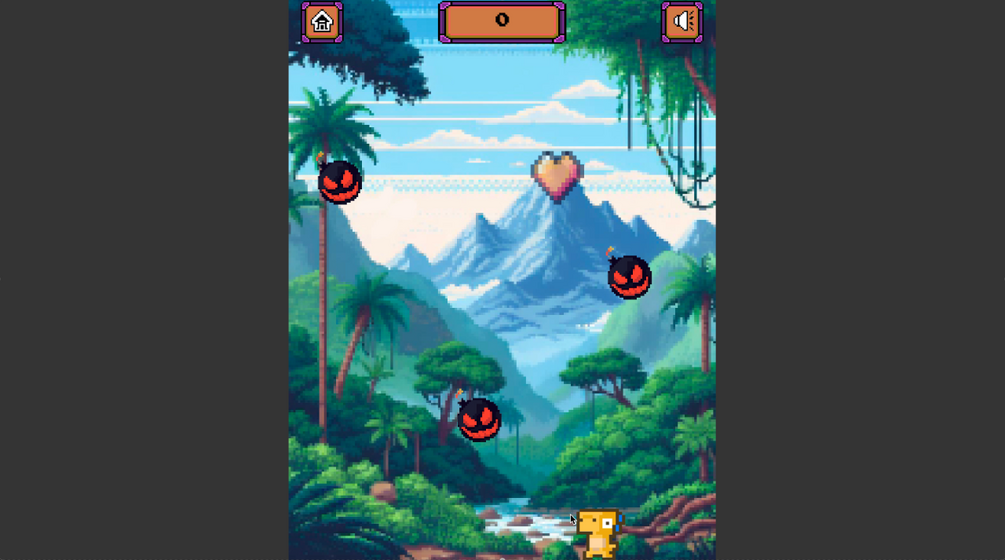 It's valentine date and love is around the corner. Your task is to help the little dinosaur collect all the falling hearts while avoiding those dangerous bombs. Can you collect as many falling hearts as possible?