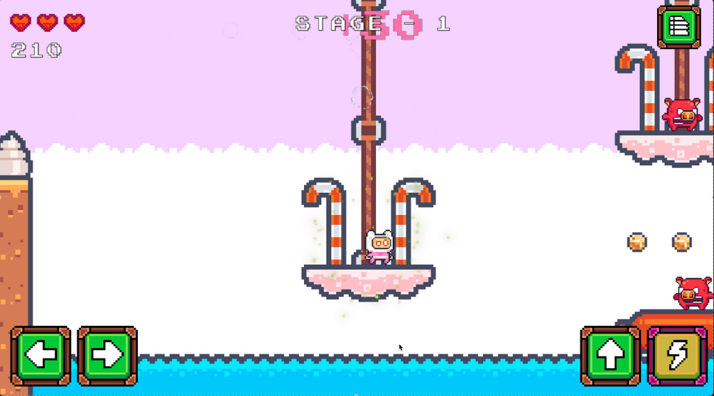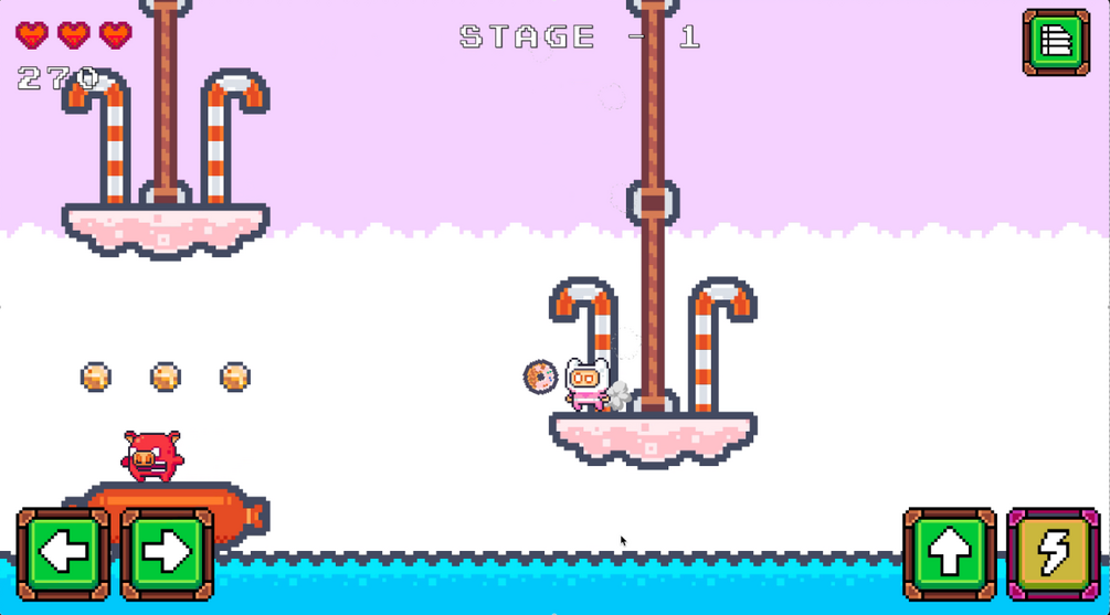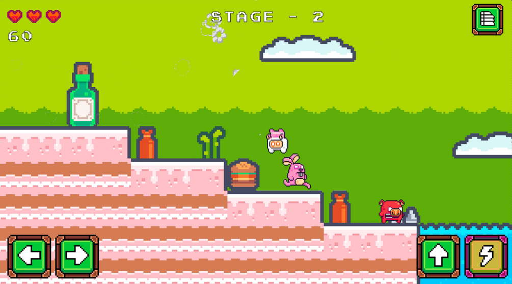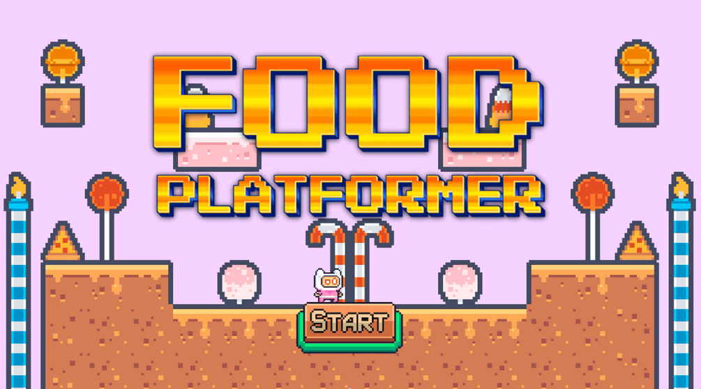 Food Platformer is a fun classic platformer game. Your goal is to travel through 10 words where you have to eliminate all monsters and find the exit. To kill enemies you can jump on them or use your special cake gun!