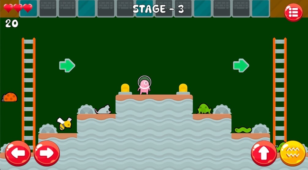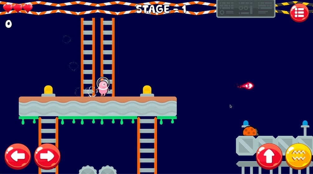 Industrial Platformer is a cute side scroller and platformer game. Your goal is to travel through 10 worlds where you have to destroy all monsters and reach the exit lamb. To kill enemies you can jump on them or use your gun!