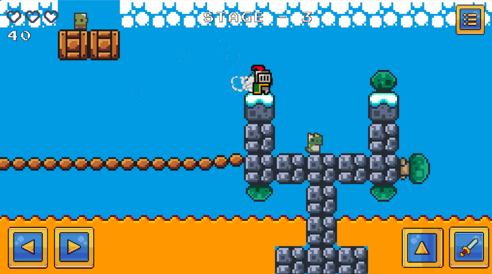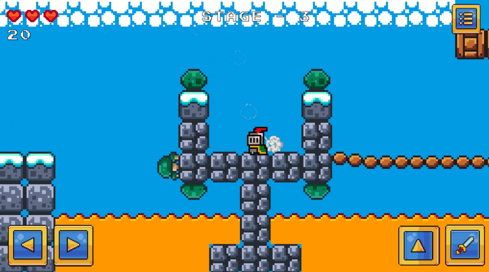 Knight Platformer is a super fun platformer game with knight and dungeon theme. Your goal is to travel through 15 worlds where you have to kill all monsters and reach the exit. To kill enemies you can jump on them or use your sword!