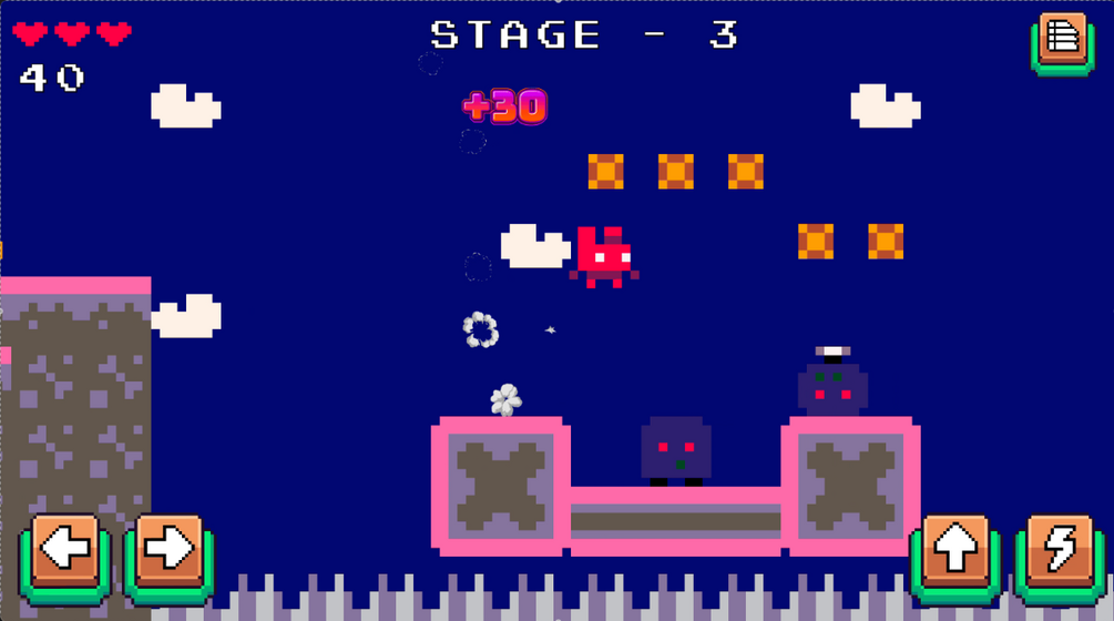 Travel through 10 worlds where you have to destroy all monsters and find the exit. To kill monsters you can jump on them or use your laser gun!